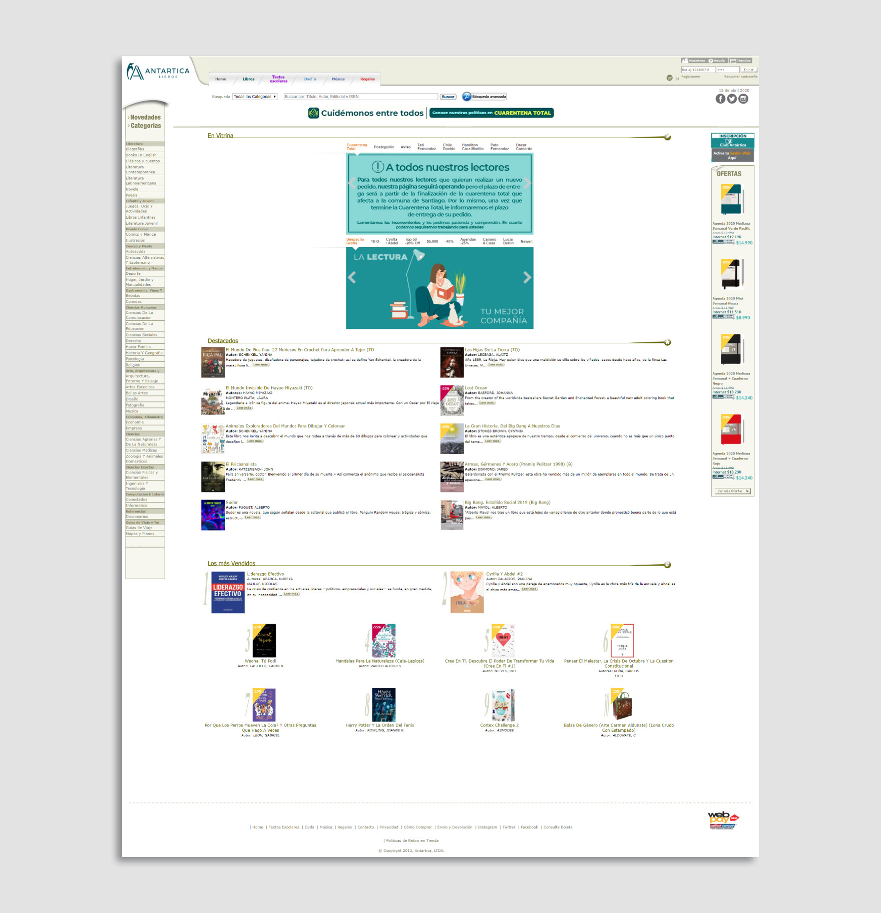 Librería Antártica es una de las más importantes cadenas importadora, distribuidora de libros y editorial en Chile que cuenta con una gran cantidad de sucursales de venta a lo largo del país.